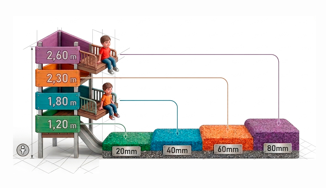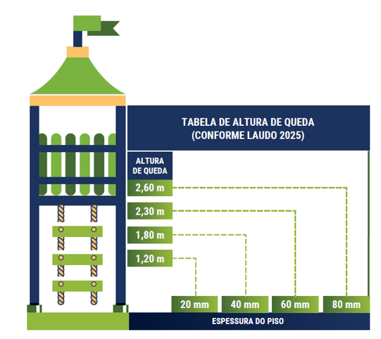 Absorve impactos de quedas de até 3 metros de altura.